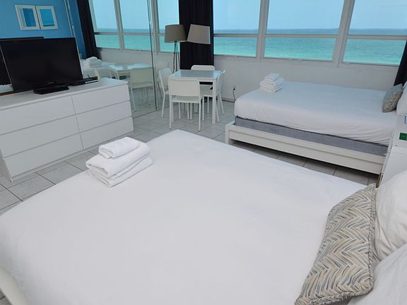 Amazing property for INVESTMENT or live here. This is one of the only buildings in all of Miami Beach that allows daily rentals. The unit is already run on its own by a management company and generates $1800 per month each month since 2007. You do not need to do anything or you can manage it yourself and average $3000-$4000 per month. DIRECT OCEAN VIEW. The unit comes fully furnished, with TV, 2 new beds, bureau, fridge table chairs and a magnificent all-white remote controlled power blackout shade that will open and close to block the sun. Large studio entirely renovated with tile floor. Oceanfront condo with plenty of amenities, valet parking, gym room, security 24/7, spa and Russian / Turkish steam bath. The HOA fee Includes Includes Cable TV, Valet Parking, Internet and Electricity. All offers will be considered. Free valet parking. The former Playboy Hotel and Club run and owned by Hugh Hefner. Michael Jackson and Tina Turner performed here, years ago, in this elegant hip theatre. You are on Millionaire mile and it is by far the very best that Miami Beach has to offer. The building was designed by famous architect and designer Morris Lapidus, the same man who designed the Fountain Blue Hotel and his use of curves in his designs is legendary. The area is close enough to all the action and far enough to be private and exclusive. The building has passed its 40 year certificate which is a major hurdle. The unit has air conditioning that is brand new. Do not miss the property. Priced to sell. New to the market and will not last long.