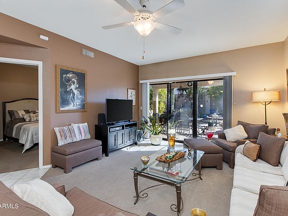 Amazing opportunity for a peaceful & low-maintenance lifestyle! This is a single level, move-in ready townhome in a gated community, with a 2 car garage & a rare-to-find private backyard (eastern facing)! A+ natural lighting, almost new stainless appliances, an island, & solid surface countertops. The primary suite (split from bedroom 2) has dual sinks, a private toilet room, & a walk-in closet. New smart water heater & water softener. Prime location in the back of the community across from the heated pool, spa, & grassy lawn. Drive your golfcart around the corner to Alta Mesa Golf Club or take advantage of private access to Alta Mesa Park. Fantastic hiking nearby and easy access to Sky Harbor airport. Exceptionally well-maintained home & community... you will love life here! 55+