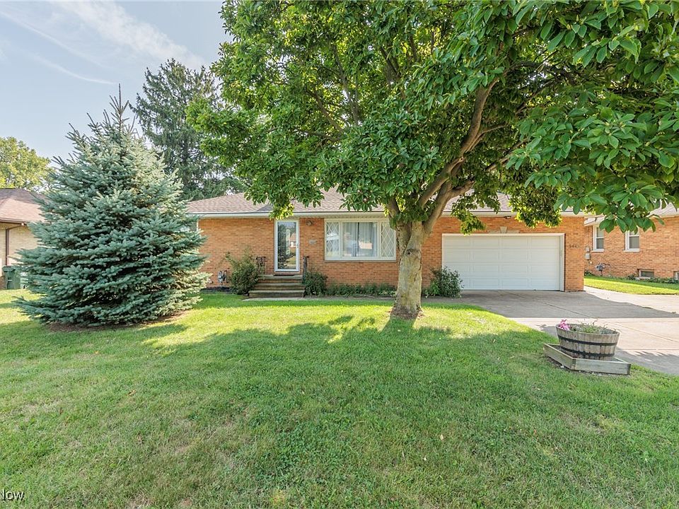 Discover the perfect blend of comfort and charm in this lovely 3-bedroom, 2-bath brick ranch. Nestled against the scenic Big Creek Parkway walking trails and wooded backdrop, this home offers a serene and picturesque setting. Inside, pristine hardwood floors flow throughout, enhancing the home's inviting atmosphere. French doors open to a delightful four-season room with vaulted ceilings and exposed beams, overlooking a spacious yard ideal for summer barbecues and cozy fire pit gatherings. Three generously sized bedrooms share a full bath on the main floor. The bright, tidy eat-in galley kitchen features white cabinetry and granite countertops, perfect for everyday dining. The living room, highlighted by a lovely stone fireplace and a large picture window, is bathed in natural light. Full finished basement adds to the appeal, with a laundry area, additional full bath, and a family room complete with its own fireplace. Ample storage is available, and a two-car attached garage completes this wonderful home. Convenient location! Schedule your showing today!