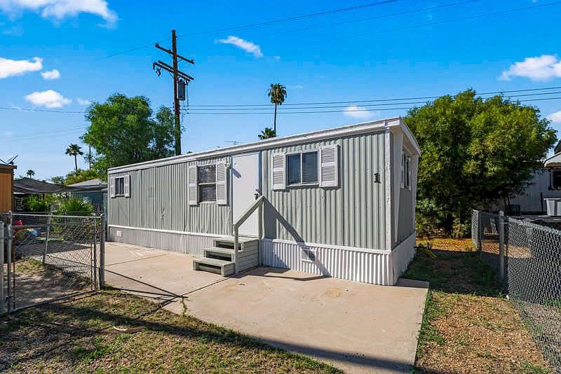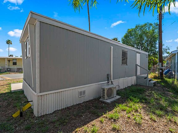 This 456 square foot manufactured home in Palm Vista community in Tucson, AZ features 2 bedrooms and 1 bathroom. Built in 1971, this cozy home has a spacious living room, functional kitchen, and a comfortable master bedroom. The exterior of the home boasts trees on the property, providing shade and a serene atmosphere.Palm Vista community in Tucson, AZ offers a peaceful and welcoming environment for residents. With well-maintained grounds and friendly neighbors, this community provides a sense of community and security. Residents can enjoy amenities such as a clubhouse, pool, and recreational activities, making it a great place to call home.
