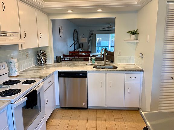 This newly upgraded second story condo provides bright and spacious living in a desirable location. The flooring consists of sound proof, high grade laminate as well as marble and tile ... there is no carpeting! In the kitchen, you will find a new glass backsplash and quartzite counter-tops that extend into a breakfast bar. There's a new dishwasher and sink, refinished cabinets and under cabinet lighting. Now with a brand new washer/dryer stackable as well! .The bedrooms are spacious with walk in closets and new ceiling fans with light fixtures. The large glass sliding doors located in the master bedroom and living room, lead out to a screened in lanai with a partial water view and some beautiful sunsets. The lanai has an outdoor storage closet and is protected by hurricane shutters. Location, location, location! Sanibel Outlets, Sanibel Island, Fort Myers Beach and Bell Tower Shops are all within 6 miles, with Downtown Fort Myers being just 10 miles away! Cardinal Cove is a peaceful/quiet community with a heated salt water pool, shuffle board courts and a BBQ area. The Clubhouse has a kitchen, pool table, mini library and more.