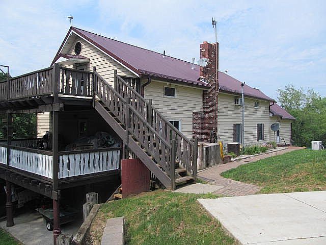You'll love the view from the bow windows in the kitchen and bedroom of the fields, trees, and hills. The nearest neighbor is a quarter-mile away on each end of the house. Here are some features of the house that make it desirable. 1. Oak trim throughout 2. Separate entries for the upstairs living area. above-garage living area, and basement living area, as well as a living area in the middle of the house: All areas of the house are accessible to each other within the house. 3. Furnace 4 years old, new metal roof, 3 years old, new insulated vinyl siding 2 years old 4. Unlimited water supply 5. Hot tub 6. 20K Generator that automatically turns on and off if the electricity goes out 7. Double-deck--both 24ft. by 12 ft. 8. Stone covered fireplace in the middle living area of the house as well as an air-tight wood-burning stove in basement living area 9. Plenty of storage space 10. Could put an above-ground pool in the backyard where one used to be. 11. Large desk space for computer, etc., in middle living area and basement living area. 12. Bricked-in mailbox and planters on both sides, brick pillars along the driveway, 13. Upstairs living area has a boiler heat system. main living area in the middle of house and basement finished living area heated by LP gas, and above-garage living area heated by electrical baseboard 14. Parking space outside garage for several cars 15. Basketball pole outside garage 16. House sells with 1 1/2 acres of ground 17. Outside motion lights 18. Covered carport along the driveway 19. Quartz countertops in middle apt. with stainless steel stove and refrigerator 20. Dish satellite service for TV and Internet already installed seller photo