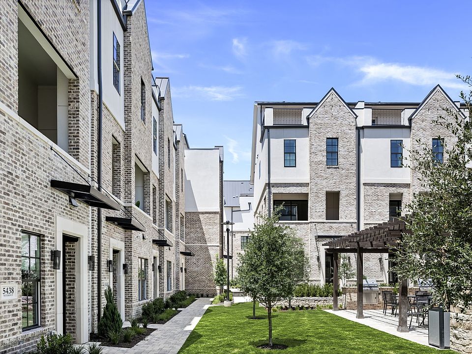 OVE-IN READY NEW CONSTRUCTION! This 3-bed, 3.5-bath townhome by InTown Homes offers a prime location just steps from dining, entertainment, and the DART. Commuting is a breeze with quick access to major highways, making it easy to explore the entire metroplex. Inside, enjoy a light-filled open floor plan, sophisticated finishes, and engineered hardwood floors throughout. The main level features soaring 12-foot ceilings and a 10-foot sliding panel door that opens to a private balcony. The sleek kitchen boasts Fisher & Paykel appliances, quartz countertops, designer tile backsplash, and soft-close cabinetry. Unwind in the spacious primary suite with a spa-like bathroom and expansive walk-in closet. The stunning rooftop terrace provides an ideal space for entertaining. The community will also feature a lush courtyard and resort-style pool. MODEL HOME LOCATED AT 5449 PATTERSON FOR SHOWINGS AND OPEN HOUSES.