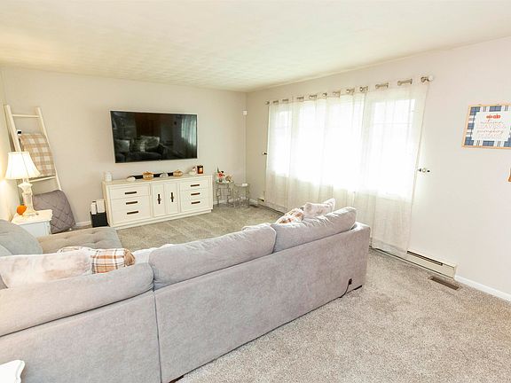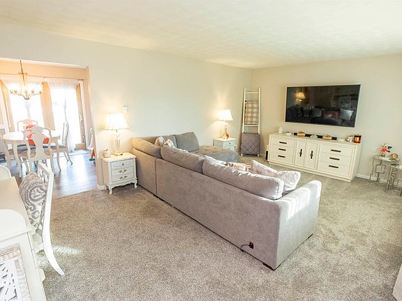 Checkout this well maintained 3 bedroom, 2 bathroom ranch located in Penn School district. This home is move in ready with custom kitchen maple cabinets, solid surface countertops, all appliances included. Spacious living room, new vinyl plank flooring in kitchen, dining, hallway and bathrooms. Primary bedroom has newly remodeled bathroom with a tiled double shower and glass doors, new vanity and toilet and flooring. 2 additional bedrooms, main bathroom has tub/shower combo, laundry area has new waterless water heater making this home perfect with everything on one level. Covered front porch, glass sliding door from dining area to cement patio overlooking large back yard. The over sized 3 stall garage has extra storage areas, 3rd stall garage has front and back garage door access, perfect for rider mower. Bar in 3rd stall garage not included. Out building is 16' x 12' for more storage and yard has an irrigation system. Schedule a showing today! No offers will be presented until Monday, November 4 at noon.