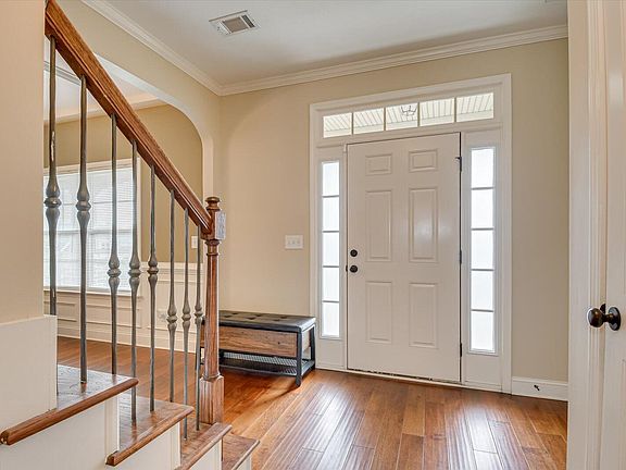 Welcome to Patriot Ridge Subdivision. This 4-bedroom, 2.5-bath home and an array of desirable amenities. Beyond the inviting front porch, discover hardwood flooring throughout the foyer, dining room, kitchen, and breakfast area. The kitchen is complemented by custom cabinets and granite countertops. Luxurious travertine backsplash adds elegance, while stainless steel appliances elevate the culinary experience. Retreat to the spacious owners suite featuring his and her sinks and a serene garden tub, offering the perfect sanctuary after a long day. Outside, a fenced yard offers privacy, while a covered back porch provides an ideal setting for outdoor gatherings Welcome home to comfort, style, and sophistication.