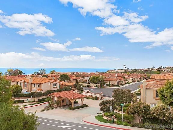 Located in the highly sought-after Emerald Cove private community, this immaculate 3-bedroom, 3-bath home offers ocean and sunset views from its private canyon rim lot. The open floor plan features high ceilings, Brazilian cherry wood floors, and a spacious living area with a fireplace. The chef's kitchen includes high-end stainless steel appliances, double ovens, and a large island ideal for entertaining. The primary suite features an enclosed ocean-view deck for year-round comfort and relaxation. Additional features include a two-car garage with an EV charger, beautifully landscaped gardens, and private outdoor spaces perfect for enjoying the views. Residents have access to Club La Jolla, featuring a heated lap pool, tennis courts, fitness center, library, and event room. This gated community is within the highly regarded La Jolla school district and offers convenient access to Bird Rock, North Pacific Beach, shopping, and beaches.