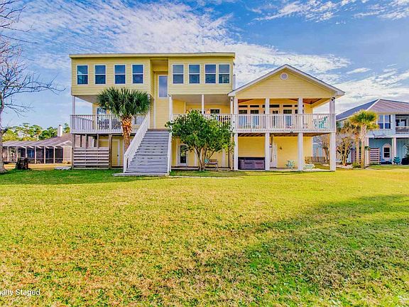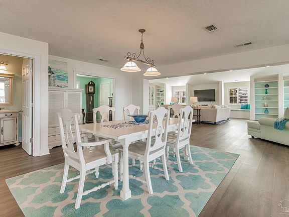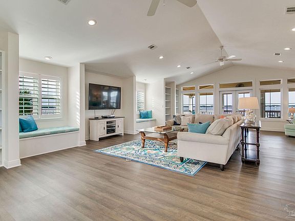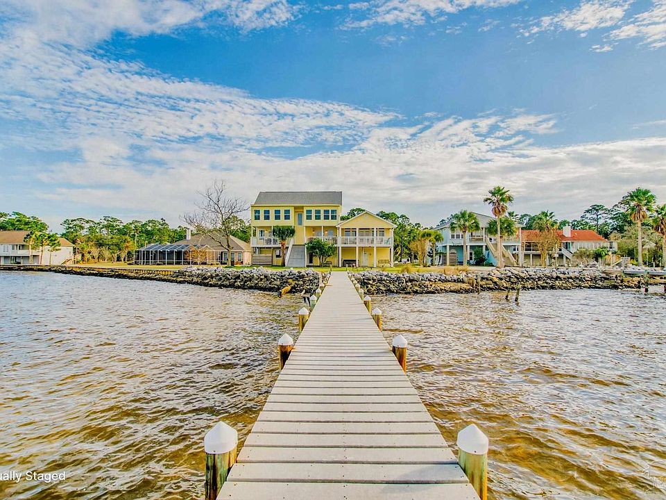 You will see the most phenomenal sunsets and sunrises from this waterfront retreat with views of Perdido Bay in the highly sought-after Innerarity Island. This home offers a private BOAT DOCK with a hanging TV, a fish-cleaning area, and plenty of space to hang. As you approach the property, you'll notice the long driveway, offering extra privacy. Step inside and be welcomed by the foyer. Enjoy a gas fireplace that fills the space with warmth. The kitchen features quartz countertops, a commercial stainless-steel gas stove, stainless steel appliances, white cabinetry, a tiled backsplash, a breakfast nook, and a hop-up bar. The expansive dining area easily accommodates a large table. Also, you'll find a home office with lots of natural light on this main floor, which could double as a fourth bedroom. The massive great room is perfect for hosting gatherings or movie nights. A built-in bar area with a mini fridge and wine cooler makes space for entertaining even better. Luxury vinyl floors throughout the main level make cleaning a breeze after indoor or outdoor activities. Step outside onto the expansive decking, a paradise offering plenty of space for lounging, grilling, or hosting events. Now upstairs, the primary suite features carpeting, a dedicated sitting area or reading nook, and bay views. The en-suite bathroom includes double vanities with quartz countertops, a water closet, a tiled walk-in shower, and a tub. The primary closet is expansive and even features a laundry area. The additional bedrooms are bright with great natural light. One bedroom includes a private sitting area. The attic space offers endless possibilities—whether you envision a playroom or extra storage. Meanwhile, the oversized garage provides ample room for vehicles or additional storage. This meticulously maintained home is ready for its new owners to create unforgettable memories. Don’t miss your chance to call this waterfront paradise your own!