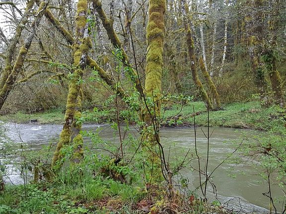 Beautiful Yamhill River frontage & trees galore! 14 Acre parcel with unique home. 1 bedroom block home with an unfinished basement. Needs TLC. Sewing room area, large open living room to the dining room and kitchen. Large shop, some level usable land and hillside forest on the other side of the river.
