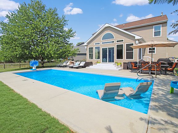 Step into luxurious living with this beautifully updated two-story home, complete with a finished basement and a host of modern amenities. This 4 bedroom home offer plenty of room to grow. Nestled on a generous lot, this residence is highlighted by a spacious sunroom that opens onto a stunning outdoor oasis. Imagine lounging by the less than 5-year-old fiberglass salt in-ground pool, surrounded by lush landscaping and expansive patio areas, all enhanced by outdoor surround sound for the ultimate entertainment experience. A charming firepit invites cozy gatherings under the stars, adding a warm ambiance to the outdoor space. Plus, enjoy serene pond views that provide a picturesque backdrop to your daily life. Inside, the home boasts newer windows throughout, a recently added spacious sunroom for year-round enjoyment, and a 2020 HVAC system ensuring comfort in every season. The kitchen is a chef's delight with granite countertops, a gas stove, an island for casual dining, and stylish vinyl plank flooring that flows seamlessly throughout the main living spaces. Whether you're hosting gatherings or simply unwinding in your private retreat, this property offers a perfect blend of indoor comfort and outdoor luxury. This home offer so many updates both decorative and mechanical. All you need to do is move in! Don't miss the opportunity to make this exceptional home yours.
