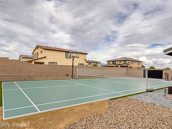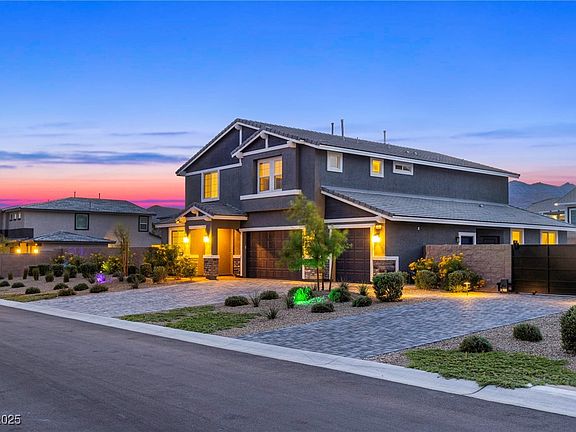 Where luxury meets comfort—welcome to this barely lived-in 2023 modern estate in a gated Northwest community. Featuring 6 bedrooms and 4 baths, including a private Next-Gen suite (casita) with its own living room, kitchenette, laundry, and entry—ideal for multi-gen living or guests. Set on nearly half an acre lot with mountain, Strip, and valley views, this home offers an 18,000+ sqft backyard with RV parking, sport court, and custom steel privacy gate. The chef’s kitchen is a showpiece with quartz countertops, stainless appliances, custom backsplash, double ovens, and 5-burner cooktop. Upstairs, a spacious loft and a secluded primary suite with a designer closet and spa-inspired bath elevate everyday living. Enjoy 9’ ceilings, smart home tech, new carpet, and a 3-car garage with 8’ doors. RV hookups, gas stub, and soft-water loop included. Minutes from Hwy 215, Downtown Summerlin, fine dining, and premier shopping—this residence defines modern Las Vegas luxury.