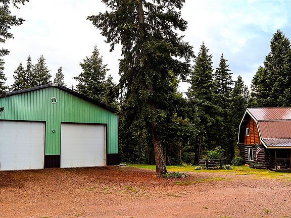 Professionally maintained, 1980s log home with hardwood floors, T&G vaulted ceilings and 2015 home remodel including Efficient Andersen doors & windows throughout, upper level; new electrical, drywall, carpeting, closets and exterior decking and handrails on the balcony; new cabinets; and new exterior cement board siding. Second Bathroom Roughed-in in heated Shop. First floor primary. Open concept loft with two bedrooms. Great room hearth with Blaze King wood stove and lots of windows. Double the Possibilities! Two ~10 Acre parcels. National Forest Borders. Pierce Creek runs through the property under a private road bridge, connecting the two current homesites. Parcel #2 is 336 Old Barn Rd, with 2nd Well/Septic/Electric and entry. Boundary Line Adjustment and/or Separate lot sale possible. Immaculate, custom built 2900 SF shop with insulated rooms, radiant floor heating and oversized overhead doors. Live turn key or build a dream home while living in an efficient well maintained home! Garden with Raised beds, Permitted green house with rain catchment system. Chicken coop and additional storage sheds and wood storage. 2012 custom built oversized 4+ car (2000 sq. ft.) shop building with 2023 fully finished, 900 sq. ft. insulated addition with radiant floor heating, additional loft storage area, and several rooms to do with as you choose (including a bathroom ready area with floor drain installed). Total shop is ~2900 sq. ft. with 2 oversized electronic overhead roll up doors, poured concrete floors and a 3rd door in the rear of the building for ATV/Snowmobile storage. 400 amp service with 200 amp at shop and 200 amp for house. Two lots, two wells, two septic systems and separate power connections. Well kept and private single family home site overlooking Pierce Creek. Reverse osmosis for pure drinking water and at the kitchen sink and whole home water softener. Dishwasher ready. Power box for second site at 336 Old Barn Road has 400 amp service ready and installed but is not connected/metered. Convenient highway access however both sites are set back, private, and on opposite sides of the creek from one another. Thoughtfully thinned, mature timber and well kept and improved roads on property, including a private bridge. Several additional build sites, including with mountain views and bordering forest service for your current enjoyment, future home or accessory dwelling unit(s). Forest service borders 2 sides with a corner marker at the edge of the property.