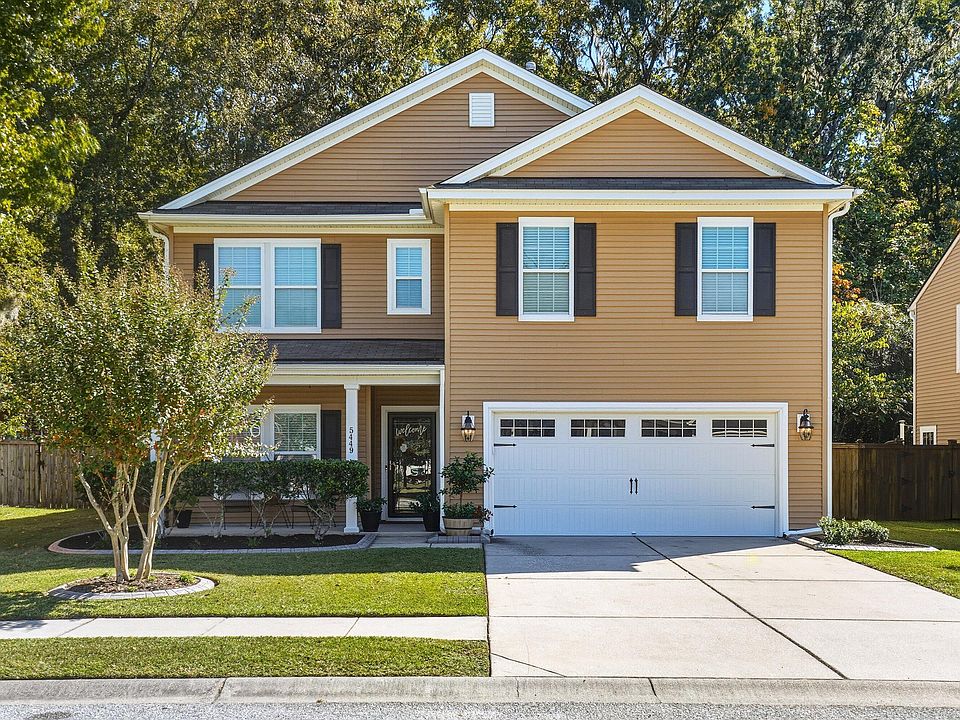 Nestled in Taylor Plantation, this charming two‑story home offers 5 bedrooms, 3 full bathrooms, and approximately 2,708 sq ft of thoughtfully designed living space. You're welcomed by a bright foyer that leads into a formal dining room--perfect for home cooked meals or hosting friends. The heart of the home is the updated kitchen featuring warm cherry-tone cabinetry, granite countertops and pendant lighting. It opens directly to the family room, creating an easy flow for everyday living and entertaining. A designated downstairs guest suite or home office with access to full bath adds flexibility for multigenerational living or remote work. Upstairs you'll find a spacious loft with double doors--a versatile space ideal for a game room, home theater, or quiet retreat.The primary suite impresses with a tray ceiling, double vanities, separate tub and shower, and a generous walk in closet. Additional bedrooms are roomy with ample closet space, and the upstairs laundry makes daily life effortless. Outside, enjoy a fully fenced ~0.15 acre lot with a patio and fenced yard ideal for backyard barbecues, playtime, or simply relaxing. A 2 car attached garage and driveway provide plenty of parking. Plus, the HVAC system was replaced in 2025, giving peace of mind for years to come. Located minutes from Charleston International Airport, Boeing, Mercedes Benz, and Joint Base Charleston, this home is ideally suited for commuting. The neighborhood adds lifestyle appeal, featuring walking trails, a scenic community dock and tranquil park making it a true haven for growing families. Priced to sell, this is an exceptional opportunity to live in comfort and convenience in one of the Lowcountry's most desirable communities.