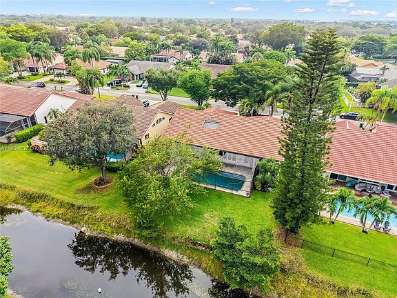 Welcome to your private oasis in highly desirable Pine Ridge, Coral Springs! This beautifully updated 4-bedroom, 2 full, 2 half baths home offers both, elegance and comfort. Step inside to soaring ceilings and walls of windows that fill the home with natural light showcasing stunning views of the backyard retreat. Enjoy the newly updated kitchen, Black Stainless Steel appliances. Primary suite features dual walk-in closets, a spa-like bathroom with soaking tub and separate shower. Outside, unwind on the expansive patio and savor serene water views in true Florida style. Highlights include: NEW impact windows, Updated kitchen with new appliances, Roof 2006, A/C 2009, This Pine Ridge gem truly has it all — style, space, and location.