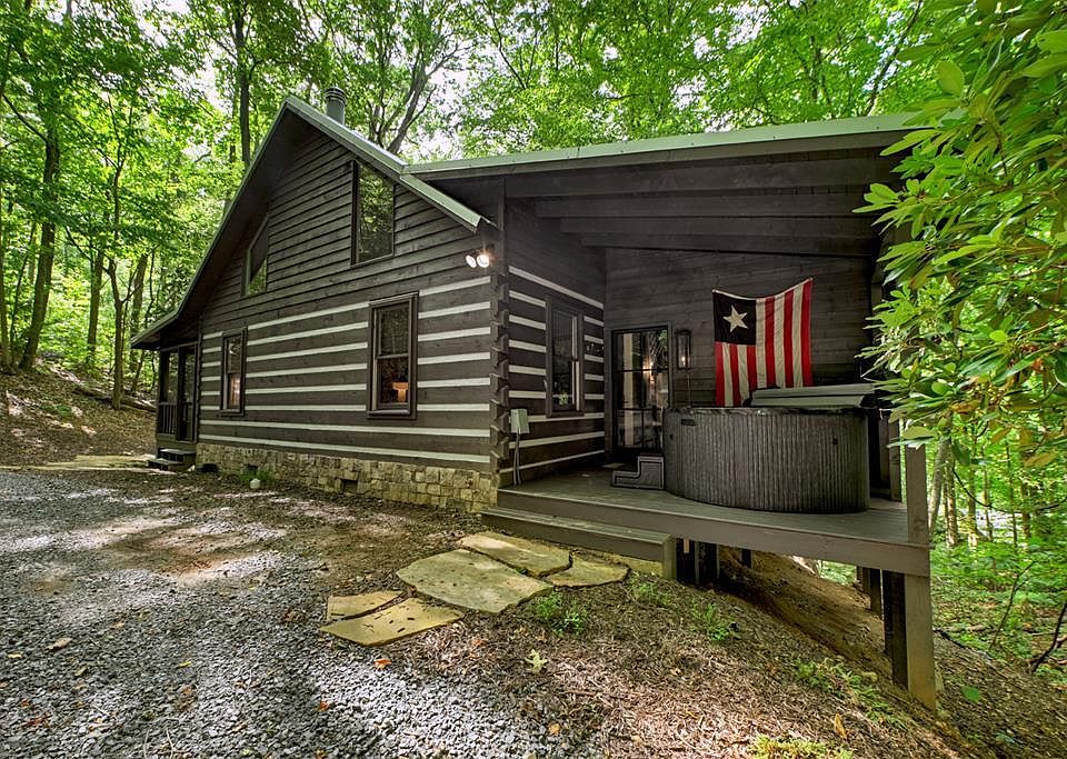 Step into the extraordinary at 545 Chestnut Ridge — an original chink log home thoughtfully reimagined and masterfully renovated in 2025 to reflect refined modern living while honoring its rustic soul. Privately nestled among the treetops in a gated enclave just seven minutes from Downtown Blue Ridge, this architectural gem offers a secluded sanctuary immersed in nature and luxury. From the moment you arrive, custom-forged steel doors set a bold tone, opening into an expansive living space where original rough sawn beams soar overhead. The open-concept great room is anchored by a stunning stacked stone fireplace, providing a warm focal point for the living, kitchen, and dining areas. The reimagined gourmet kitchen is a work of art—featuring custom black oak cabinetry, Carrara marble countertops, Kitchenaid appliances, and exquisite unlacquered brass fixtures that will gracefully patina with time. Three hotel-inspired bedrooms evoke a serene, boutique retreat, each curated with designer furnishings and plush bedding. The two spa-like bathrooms are a study in artisanal craftsmanship, boasting handmade Zellige clay tile showers, rainhead fixtures in unlacquered brass, marble floors, and custom glass enclosures. Outdoors, the experience continues. A large screened-in porch overlooks a lush green canopy, ideal for morning coffee or evening wine. Just beyond, a tranquil spa deck invites you to unwind beside the soothing sounds of rushing Charlie Creek—an unmatched Zen setting. Situated minutes from the area's premier hiking and biking trails in the coveted Aska Adventure Area, this property also boasts impressive rental potential with an estimated $80,000+ in annual revenue estimates from a proven local co-host (projections available to buyers). Furnishings, dcor, and curated contents are negotiable for a true turnkey offering. Where timeless design meets the soul of the mountains — 545 Chestnut Ridge is more than a home, it's an experience.