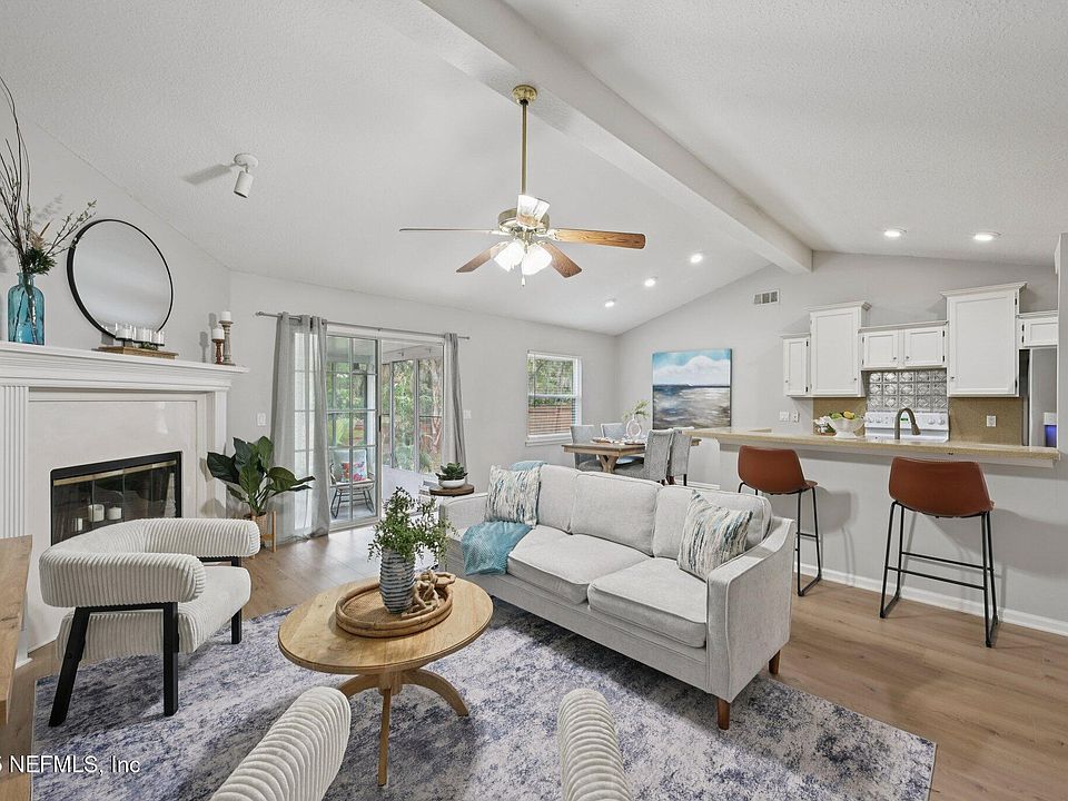 Stunning 5-bedroom 2 bath home in the heart of Fleming Island! This inviting home offers a bright and elegant sunroom—an ideal retreat for taking in the peaceful surroundings. The front room can be used as a formal living room or is perfect for dedicated office space. The open-concept living area seamlessly connects to a well-appointed kitchen and adjacent breakfast nook, creating a perfect flow for entertaining or enjoying everyday moments. Luxury vinyl plank flooring runs throughout the home, complementing the spacious family room with its vaulted ceilings and cozy fireplace. The primary suite is generously sized and features French doors leading directly to the sunroom, where you can relax and enjoy views of the lake from the privately fenced backyard. A short stroll to the A rated Patterson Elementary School and convenient to shopping, dining, movies and more.