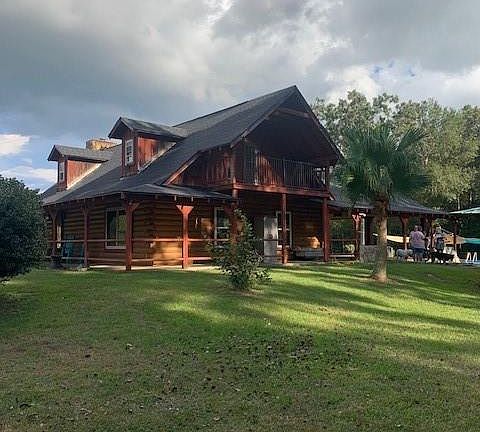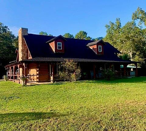 Where tranquility meets comfort, the perfect home awaits with 18.36 unrestricted acres in Hardin Texas. This log home with its inviting charm, is not just a house; it is a lifestyle. With 3 bedrooms, 2 & 1/2 baths and amazing features like a butlers pantry, kitchen island with a 5 burner gas cooktop, open concept, beautiful fireplace, custom cabinets, granite throughout, balcony, pool, barn, pole fence & more , this property offers an exceptional living experience that stands out in todays market. One of the standout features is the outdoor space. The huge patio & pavilion with a 1/2 bath & outdoor shower create an ideal setting for gatherings. The guesthouse adds value to the property offering 2 bed 1 bath, open concept, income producing. The inclusion of a generator, water softner & solar panels highlight modern living. Ample space for gardening, raising animals or enjoying nature. New flooring, new roof & water heater mean that this home is ready for immediate enjoyment.