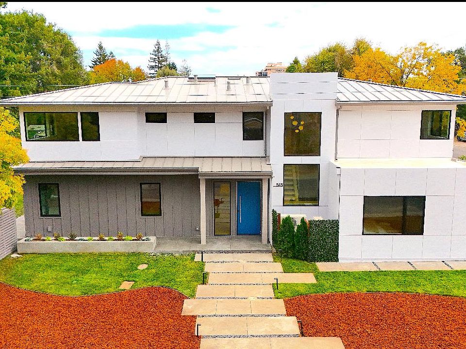 A striking new construction offering modern design and timeless livability in one of Palo Alto's most desirable neighborhoods, Barron Park. This newly completed residence spans approximately 3770 sq ft of refined living space on an 8,340 sq ft lot, featuring 5 bedrooms, 5.5 baths, and a dedicated office, along with a 230 sq ft detached garage and an attached ADU ideal for guests or multigenerational living. Light-filled interiors reveal European white-oak floors, skylights, and oversized sliding glass doors that open to a tranquil backyard oasis. The chef's kitchen showcases Arrital Italian cabinetry, premium Miele appliances, and a waterfall stone island with a cantilevered dining extension elegant centerpiece for gatherings and entertaining. The primary suite offers a serene retreat with a tray ceiling, corner window bay, and a spa-inspired bath featuring a freestanding soaking tub, curbless glass shower, and dual stone vanities. Energy-efficient systems, designer lighting, and a thoughtfully integrated ADU enhance comfort and versatility. Located near Stanford University, California Avenues shops and cafés, and Bol Parks scenic trails, this home also enjoys access to top-rated Palo Alto schools, including Barron Park Elementary, Fletcher Middle, and Gunn High.