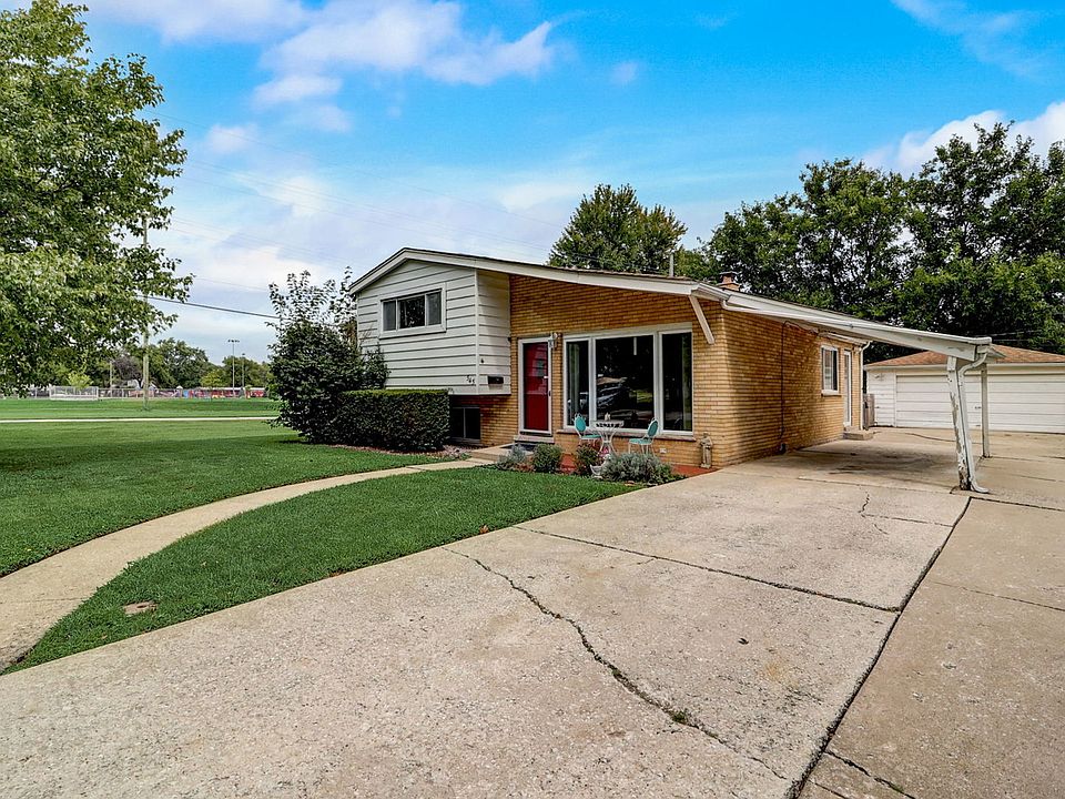 ***Multiple offers. Highest and best due 7:30 p.m. 9/13/23. Premium location situated next to the Prairie Path and gorgeous Eisenhower Park. This darling bi-level features vaulted ceiling, hardwood floors, an open concept includes, living, dining and a sharp kitchen that hosts plenty of cabinetry, stainless steel appliances and granite counters. Just a few steps up are located the bright three bedrooms and a full bath. Lower level has plenty of space for a generous multi-functional room with a full bath. Perfect for a home gym, recreational area/family room or your creativity.! Bright and spacious! Plenty of storage. Side, covered drive leads to 2.5 car garage and large fenced yard.