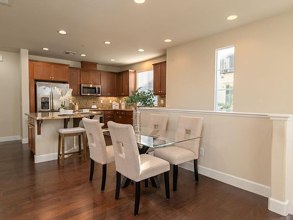 Location! Location! Location! This bright and roomy townhome is centrally located in the heart of Sunnyvale. Within 10 minute drive to Apple, Google and plenty of restaurants and grocery stores located on El Camino Real. This home offers gleaming hardwood floors, granite countertops, designer touches throughout, Central A/C & Heating along with recess lighting, stainless steel appliances & an oversized kitchen island for all of your culinary needs. Community offers BBQ/Picnic area & small park for some family fun. Come take a look before its too late!
