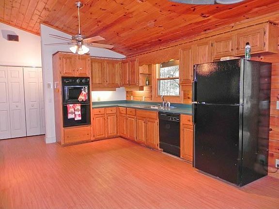 Overlook colorful vegetables growing in your garden from the covered deck of this 2-bedroom/3-bath, creek front log cabin on 1.96 acres in Lakemont. Has a large living room with tongue & groove vaulted ceilings, natural rock fireplace, master suite with walk-in closet, whirlpool tub, sprawling kitchen with plenty of counter space and storage, pantry. Partially-finished walk-out basement with laundry, two-car garage, finished bath, and workshop. 3,200-SF including basement.