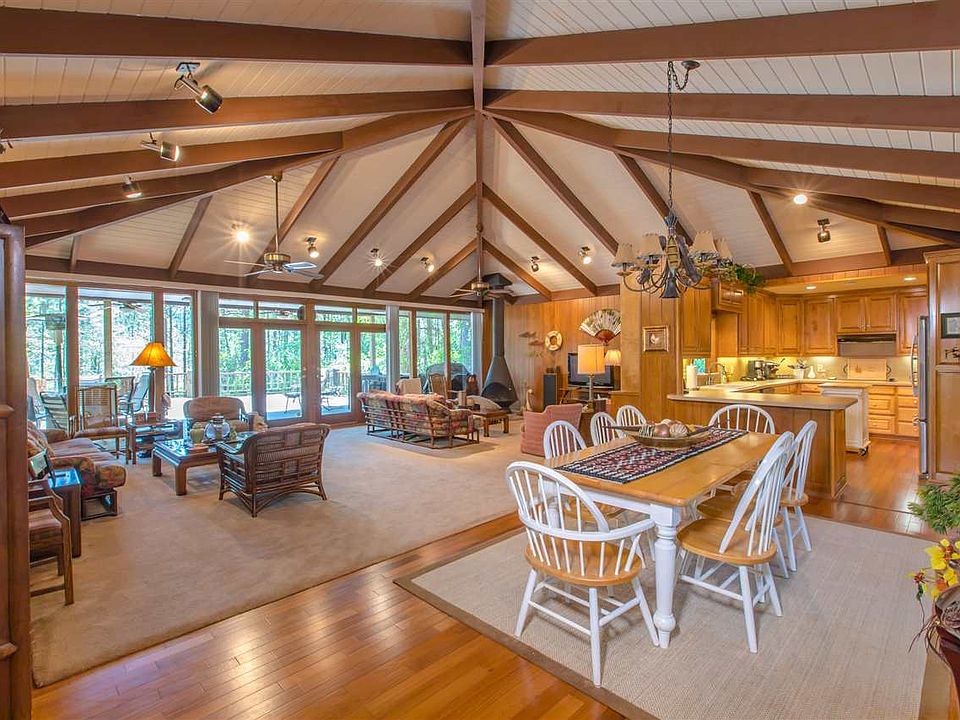 WATERFRONT LISTING. Experience the best Lake Sam Rayburn has to offer with this fully furnished waterfront lake Lodge. Stepping into the lodge on the main floor you'll find yourself in a sunlit atrium which brings the outside in. The main floor hosts 3 bedrooms, two baths and a game room with a bar and yes, the pool table is included. The upper level includes a master suite, kitchen, dining and living room which has gorgeous views that extend out to the large deck. The bottom floor is currently being used as a bunk room with 5 beds, another full bath and perfect area for entertaining. Adjacent to the bunk room is a combination utility room/butlers's pantry with a plethora of storage and a full bath. The floorplan is a must see and was once named Better Home and Gardens floorplan of the year! Perfect getaway for large groups.
