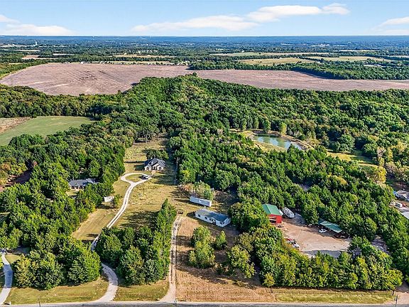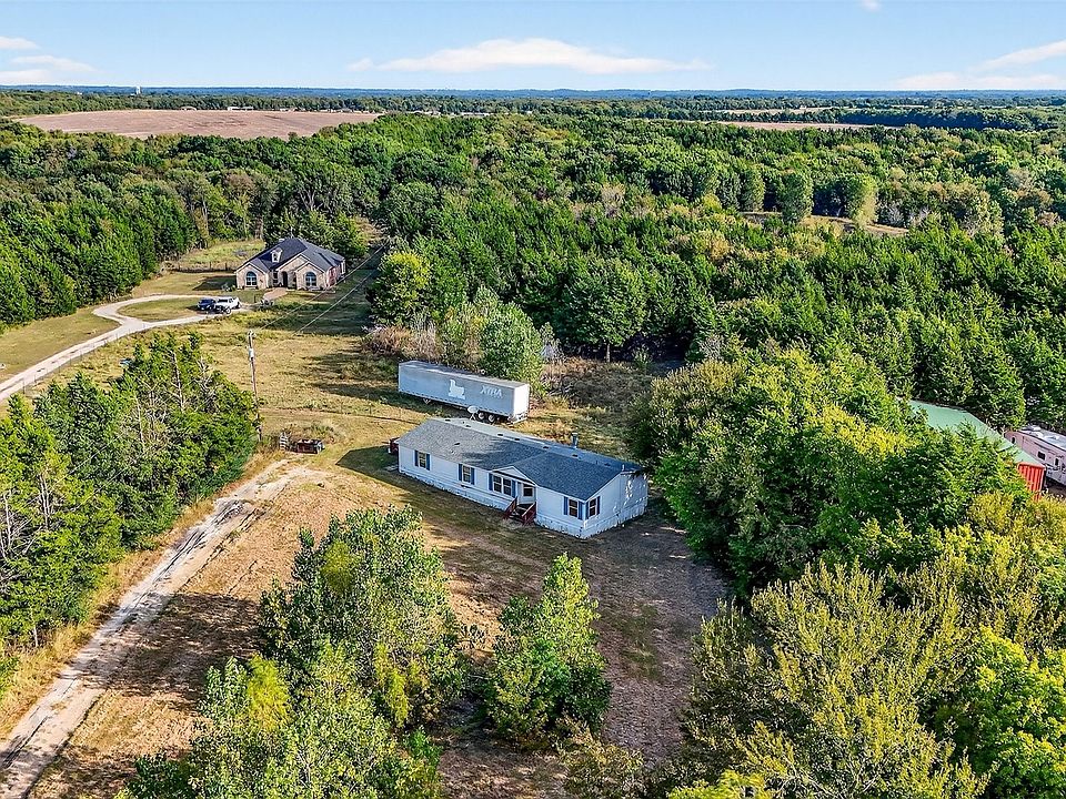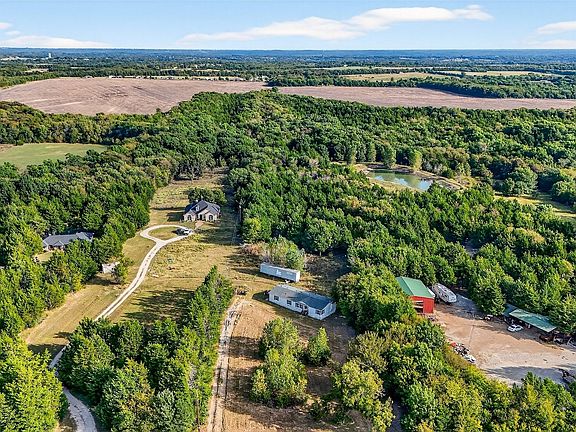 Nestled on 5 quiet acres just outside of Sherman, this 3-bedroom, 2-bath home offers nearly 1,800 square feet of comfortable living space in a peaceful rural setting just minutes from town. Centered around a cozy wood-burning fireplace, the large living area is perfect for relaxing or entertaining. The kitchen features a center island, ample cabinetry, and an eat-in space for casual meals. The dining room is located just off the kitchen space. The primary bedroom is located separately from the secondary bedrooms and features a walk-in closet and full en suite bath. The secondary bedrooms have easy access to a full shared bathroom. Separate utility area with space for washer, dryer, and additional storage. The acreage is heavily treed with a small pond tucked at the back of the property. No known restrictions allowing you to enjoy the freedom to use the land as you wish!