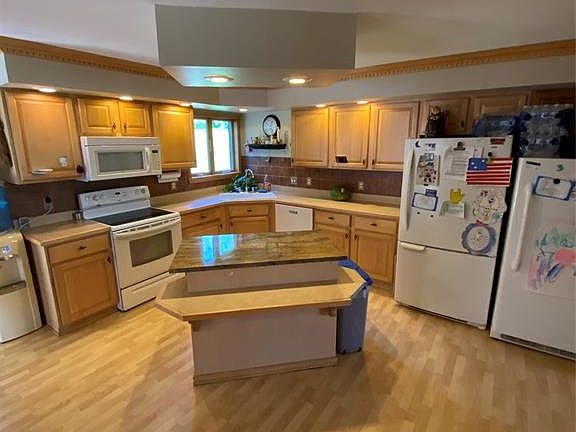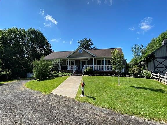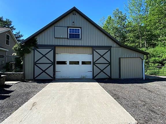 Beautiful home located in country setting but just minutes from downtown with an amazing layout over looking 13 plus acres of land. Property has a fenced area for a horse, a stream fed pond and a great layout for use of the land. Oversized garage 60 by 40 on concrete slab with water and electric. Garage also features and upstairs suite suitable for an office or separate apartment. Concrete slab located next to garage 20 by 40 to park your RV, Boat, or misc. toys. Home has an amazing layout with 4 bedrooms and 3 full baths and over 3800 sq ft for you to make your home. Home has a top of the line Buderus Boiler 2 pellet stoves and a propane gas fire place. Master suite located on first floor. Home also features a walk out finished lower level with endless opportunity's to use as you like. Lower level features 2 bedrooms and a built in kitchenette for entertaining. 2nd Floor is a large bedroom area offering tons of privacy and personal living space. 2nd floor also has beautiful sky lights