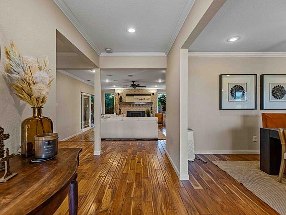 Welcome to 545 N. Daubenberger Rd, this stunning Turlock home blends timeless design with modern comfort at every turn. From the moment you arrive, you'll notice the attention to detail and the undeniable sense of elegance that flows throughout. The open-concept floor plan highlights a chef's kitchen complete with a gas range, center island, and designer cabinetryperfect for both everyday living and entertaining. Upgraded features include a presidential roof, dual-pane windows, tankless water heater, dual-zone A/C, and a built-in ambient sound system. The thoughtfully designed mud/laundry room adds functionality, while the tastefully remodeled bathrooms feature temperature-controlled systems for a touch of luxury. The primary suite offers a true retreat with a spacious walk-in closet and a spa-like en suite bathroom. Step outside and discover an entertainer's dream backyardcomplete with a fully equipped outdoor kitchen, covered patio with ceiling fans, storage shed, and rear sliding fence for alley access. Come experience the perfect blend of sophistication and comfortcome fall in love with Daubenberger Rd.