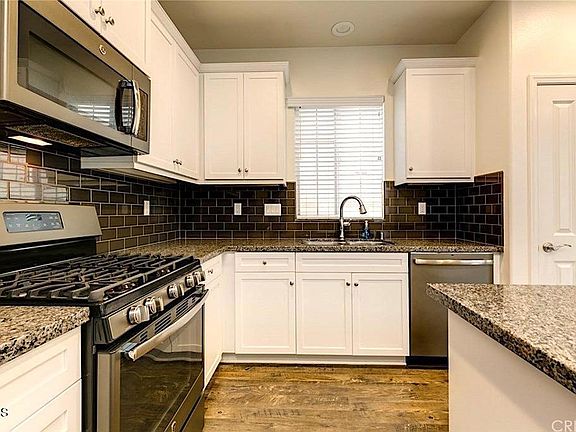 Private side-yard gardenCustom blinds and curtainsWood-like flooringKitchen with granite countertopsStainless steel appliancesTons of storageCustom paint