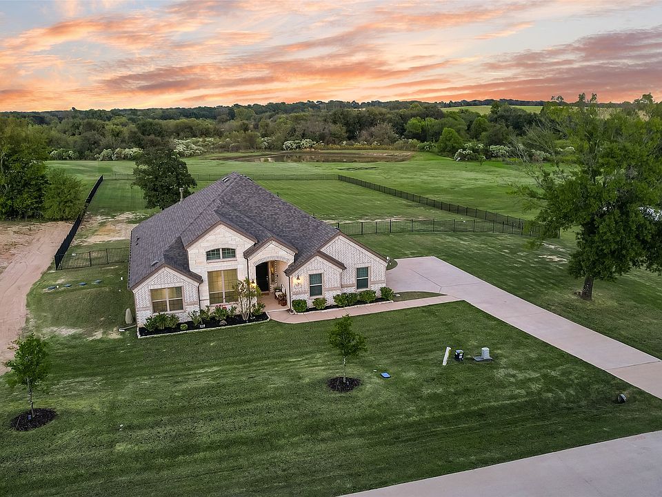 Welcome to the highly sought-after, cul-de-sac neighborhood of Hunter Estates — where luxury and space meet small-town charm! This stunning single-story home, completed in 2023, sits on a premium 1.4-acre FENCED lot offering plenty of room to relax, play, and entertain. The fantastic floor plan features 4 bedrooms, a private study, and 2 spacious living areas. Enjoy a thoughtful split-bedroom design that places the primary suite apart from the secondary bedrooms for added privacy. The second living area and three secondary bedrooms are tucked away on the opposite side of the home — ideal for family or guests. Highlights include an open-concept layout, gas cooktop, cozy fireplace, and sprinkler system. With modern finishes and a layout that flows beautifully, this home checks all the boxes for comfortable and stylish living in one of the area’s most desirable communities.