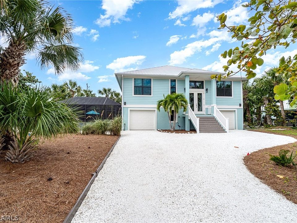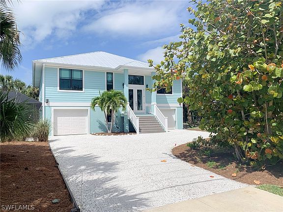 Paradise awaits you in this upscale 2+ Den, 2 Bath, Contemporary Key West home in the heart of Sanibel! This 2016 pool home has deeded beach access located just 7 houses away. Beautifully designed, this custom-built home welcomes as you enter the decorative French doors. Soaring ceilings in the foyer lead you to the open living, dining and kitchen areas, with plenty of room to gather with friends and family. The gourmet kitchen comes complete with brushed granite counters, KitchenAid appliances, including double-ovens, cooktop, dishwasher, and spacious refrigerator. Enjoy the oversized farmhouse sink, prep sink, stand-alone ice maker, and walk-in pantry. Vaulted ceilings with decorative beams, 8’ doors, LVP flooring in main areas with carpeted guest bedroom and den. Primary suite has a sizable walk-in closet with custom shelving. The tranquil en-suite bath includes a freestanding soaking tub, floating vanity with dual sinks, and large walk-in shower. Split bedrooms. Guest bedroom and den can accommodate a comfortable space for all your guests. Step outside off the living area to the rear deck and enjoy wonderful sunsets in your private retreat. Below, the oversized screened in lanai, complete with a heated, salt water pool make this an entertaining oasis. The enormous garage area offers abundant storage and can be entered from the foyer or the ground level lanai area. Lower level is all concrete block and concrete board construction. The backyard has a new 6’ chestnut vinyl privacy fence with two gates, new sod, sprinkler system, and landscape lighting. The pristine sandy beach is a just a short stroll away! Enjoy some of the best shelling in the world or relax and enjoy the amazing sunsets. Come live your best island life!