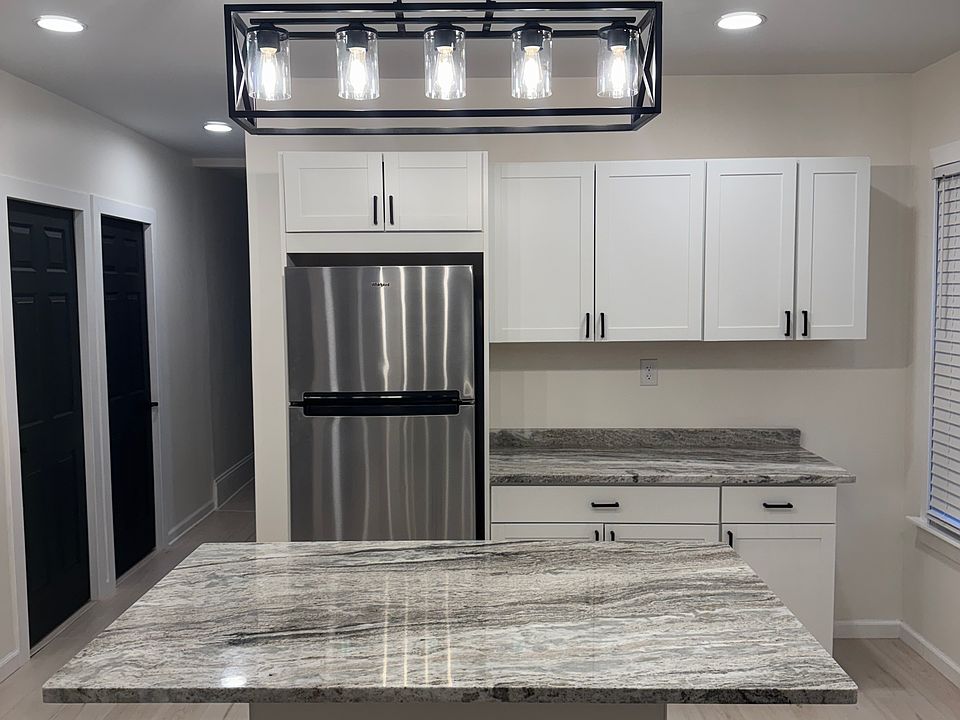 Brand-new floors and wallsMarble countertopsBuilt-in refrigeratorCenter islandBeautifully redesigned kitchenExpanded cabinet space