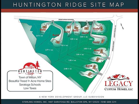 Come see a Legacy Custom Built home and be inspired to have your new home built at Huntington Ridge! Enjoy privacy at this country setting & yet be just minutes to all Saratoga Springs & Ballston Spa have to offer. Choose a 1+ or 2+ acre lot w/generous setbacks, choose your home from LCH's portfolio of exciting, new, open house plans, and work with an award winning interior designer to personalize your new quality, energy efficient, warrantied home! Call today for more infor & Let's Get Started! Best Value!
