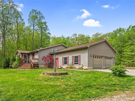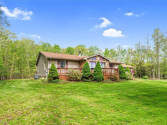 Get ready to fall in love with this spectacular 3 bedroom 2 full bath ranch home on approximately 3.66 acres in Conneaut. There is a floor to ceiling stone, see through fire place accenting the space between the dining room and living room to wow any person entering your home. The abundance of natural light permeates every area of this open area to showcase the great expanse of the room. On the opposite side of the house is the large 2 bedrooms with a full bath. The master has it's own bath with ceramic tile, jetted tub, shower, walk-in closet and laundry. From the master bedroom you can also access the large deck that covers the backside of the house. The kitchen is set up to cook and entertain while doing it. All appliances stay- bonus, it's city water and septic. Full basement with poured concrete wall construction with a dog bath and plumbing installed to create another full bath. There is also a pole barn about 30x40 with water and 220 electric ran underground to be hooked up.