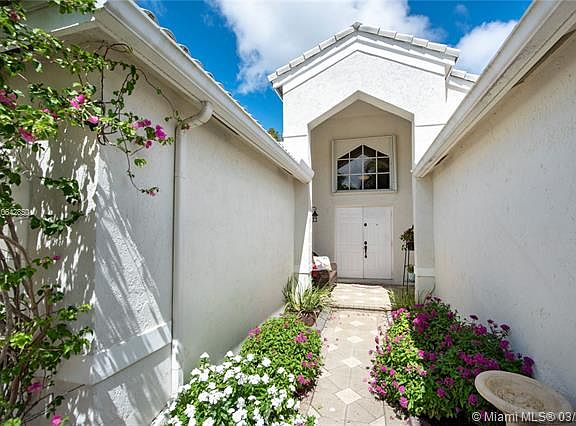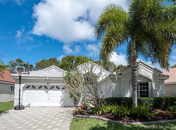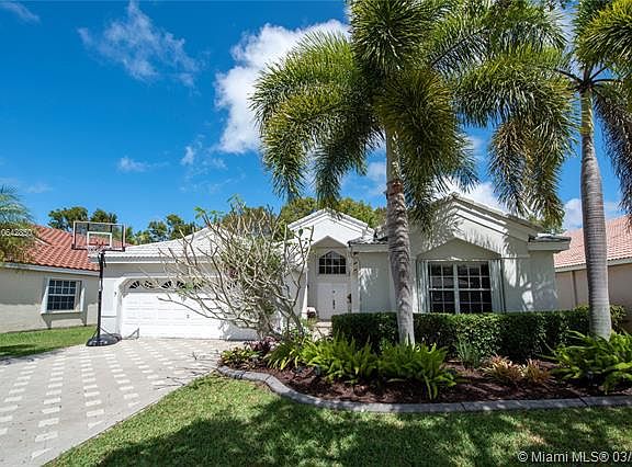 Welcome to this private tropical oasis in the guard gated community of The Falls in Weston. Relaxing is easy in the large chromotherapy jetted hot tub surrounded by Key Lime, Plumeria, and Coconut trees! Spacious one story 4 bed / 2.5 bath home with ceramic flooring, large master walk-in closet, storm accordion shutters, new A/C, and new hot water heater. Low HOA fees with excellent community amenities including pool, basketball court, volleyball court, and playground. Close to shopping and highways. In the boundaries of Weston's desirable A rated public schools.