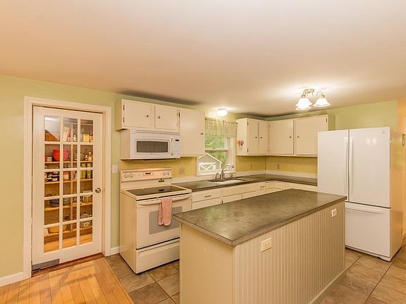 This beautiful sprawling cape has plenty of room to roam and offers many extras including maple floors throughout. First floor has open concept kitchen with dining area and unique concrete countertops. First floor also has full bath, office/den, living room area with pellet stove (negotiable) and separate family room that leads to spacious composite deck. Second floor has a second full bath, master bedroom with walk in closet and two addtional bedrooms. Exterior has wrap around covered porch, plenty of off street parking and a level/wooded yard. All conveniently located off the beaten path, yet close to major routes. Must see!