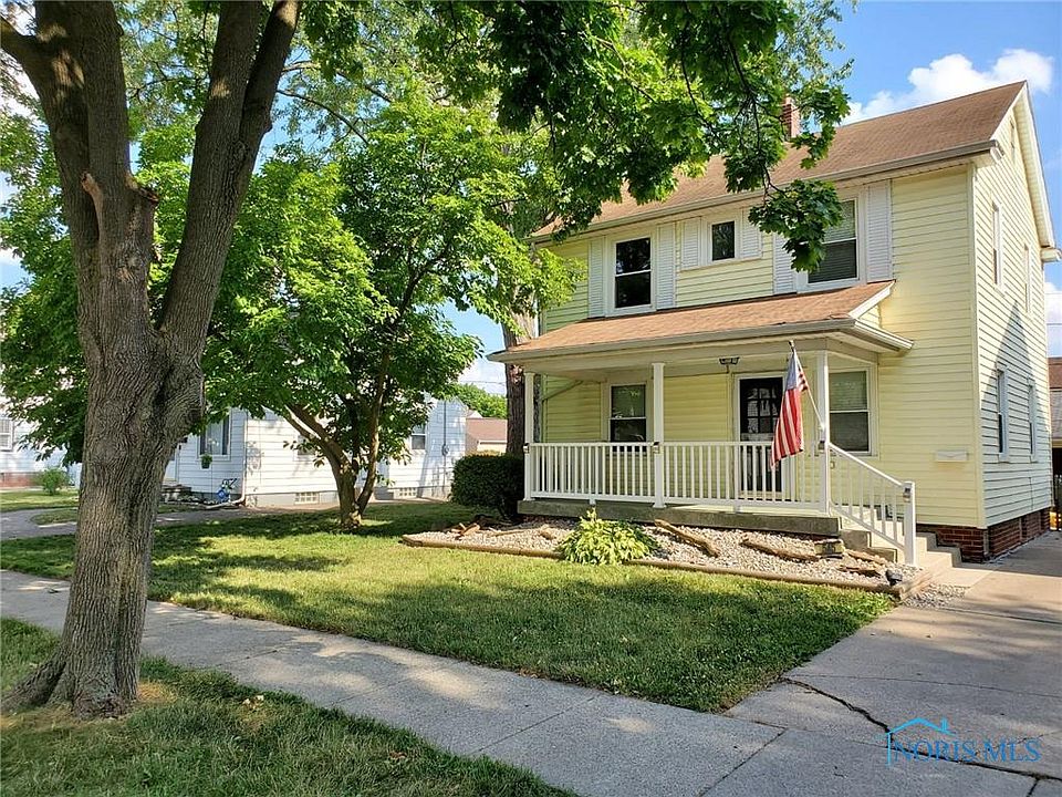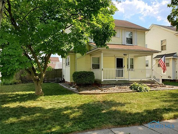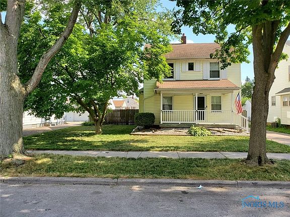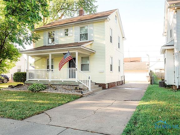 This updated West Toledo Colonial exudes all of the charm with an old fashioned tree lined street & covered front porch overlooking a generous lot and half. Main floor features kitchen/formal dining both with new life proof vinyl. Living room features new carpet & ceiling fan. There are 3 tastefully decorated bedrooms & full bath up. The partially finished bsmt and back porch add living space and a 2.5 car garage with a side carport/porch has so much additional storage!! New HVAC in 2021. The yard is fully fenced for your privacy. Close to schools, churches & shopping.