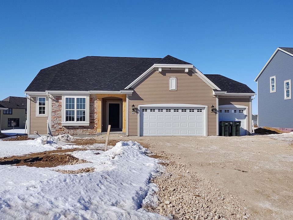 NEW CONSTRUCTION IN FARMSTEAD CREEK SUBDIVISION Smart,compact design places the spacious Owner's Retreat, shared rooms, including great room, dining area and kitchen at the rear of the home for privacy. The kitchen features a versatile island, walk-in pantry and plenty of storage space. Away from the Owner's retreat towards the front of the home, are two comfortably sized secondary bedroom and hall bath. This home features granite counters, luxury vinyl plank flooring, in main living ares, and ceramic tiled floors at the baths. ,stone to ceiling fireplace, three car garage, concrete driveway, deck and a 4' rear exposure at basement with large daylight windows. There is a nice size laundry/mudroom with bench . Stainless Steel gas stove, french door refrigerator , and microwave included