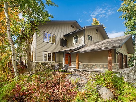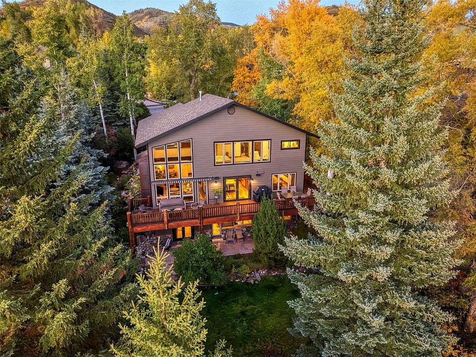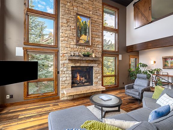 Tucked amid mature trees along Steamboat Boulevard, this 5-bedroom residence offers privacy and timeless mountain character on a half-acre lot bordered by a seasonal creek. Meadow Brook runs through the property in the spring and summer, bringing with it the peaceful sound of running water. The setting feels secluded yet remains convenient to downtown, the Ski Area, and Rollingstone Golf Course, with the Sanctuary and Skyline Trails just a short walk away. Inside, the home is defined by warm, natural materials and thoughtful updates. Reclaimed barnwood floors span the main level, where the great room’s vaulted ceilings and floor-to-ceiling stone fireplace anchor an inviting living space. Glass doors open to a deck that runs the length of the home, framing views of the surrounding mountains and overlooking a flat, tree-lined backyard. The kitchen is generous in both scale and craftsmanship with granite counters, stainless appliances, and a 6-burner Wolf range. Nearby, a main-level office with built-in shelving and lofty ceilings provides a comfortable workspace surrounded by natural light. The primary suite offers air-conditioning, mountain views, dual sinks, a steam shower, and a sizeable walk-in closet. The upper level includes a junior suite with ensuite bath and a fifth bedroom currently used as a gym, but offering flexibility for overflow guests. The lower level offers two additional bedrooms, a full bath, and a family room that opens to a covered patio and private yard shaded by aspens and evergreens. Move-in ready, the home features updates including two new baths, new flooring and trim on the upper level, fresh paint inside and out, and a newly stained deck, bringing modern sensibility to this classic Steamboat retreat.