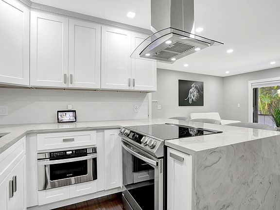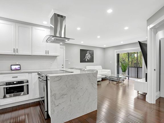 Discover elevated living in the heart of Deerfield Beach with this beautifully updated, sun-drenched, south-facing corner condo. Offering 2 bedrooms and 2 bathrooms, this home is filled with natural light and modern finishes throughout. The open-concept kitchen is a true centerpiece, featuring sleek white shaker cabinets, a bold standalone range hood, granite waterfall countertops, stainless steel appliances, and a spacious pantry.Host with ease in the inviting living area overlooking the serene nature preserve, complete with a built-in bar and wine rack. Step out to the screened-in patio and enjoy peaceful views of the wooded surroundings.Rich dark wood flooring is complemented by contemporary 7.5-inch white baseboards, stylish modern doors, and crisp white window trim, creating a clean, sophisticated look. The primary suite includes a large walk-in closet with custom shelving and a luxurious en suite bathroom with floor-to-ceiling tile. The guest bathroom also features a full tub and matching tilework for a cohesive, upscale feel.