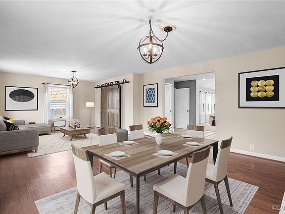 Awesome 1700' sq ft Ranch style home with 3 bedrooms, on a corner lot with an an amazing detached Garage! Mature landscaping, maintenance free exterior featuring vinyl siding, shutters and two concrete driveways big enough to handle your cars, boats and RV's! Interior features include; Living and Dining room areas with laminate flooring (hardwood under the Dining area), overhead decorative lighting and an expansive view all the way to the Great Room. Beautiful barn doors add a nice architectural detail to a closet with lots of additional storage. This space is so versatile it could easily serve as an office area. The kitchen has decorative tile backsplash, stainless appliances, recessed and pendant lighting. Ample pantry and breakfast bar add functionality and convenience. The Kitchen opens to the bright and sunny Great Room. The wow factor of this home has to be the huge 23' x 22' Great Room with vaulted ceilings, gas fireplace and windows that flood the room with beautiful natural light. Easy access to the deck and patio make this room perfect for indoor and outdoor entertaining. Three bedrooms all with overhead lighting and 2 with ceiling fans (hardwood under the laminate flooring). The renovated bathroom features ceramic tile flooring, gorgeous shower and a large linen closet. Everybody loves a great laundry room, especially one with shelving and cabinet storage. Exterior Features include; wonderful, detached Garage with electricity, a workshop area and overhead storage. The outdoor spaces of this home include a deck, patio and pergola where you can enjoy the sunset view. Flowering trees, bushes and other natural elements such as stone and slate add to the beauty of this great corner lot. ADDITIONAL FEATURES: Natural gas cooking, outdoor lighting, gutter system, new windows (2023), Kitchen & Bath remodel (2022), gas hot water heater (2024), HVAC system only 7 years old. Convenient to area dining, entertainment, Interstate 64, and Virginia Beach is only 30 minutes away! Welcome home......