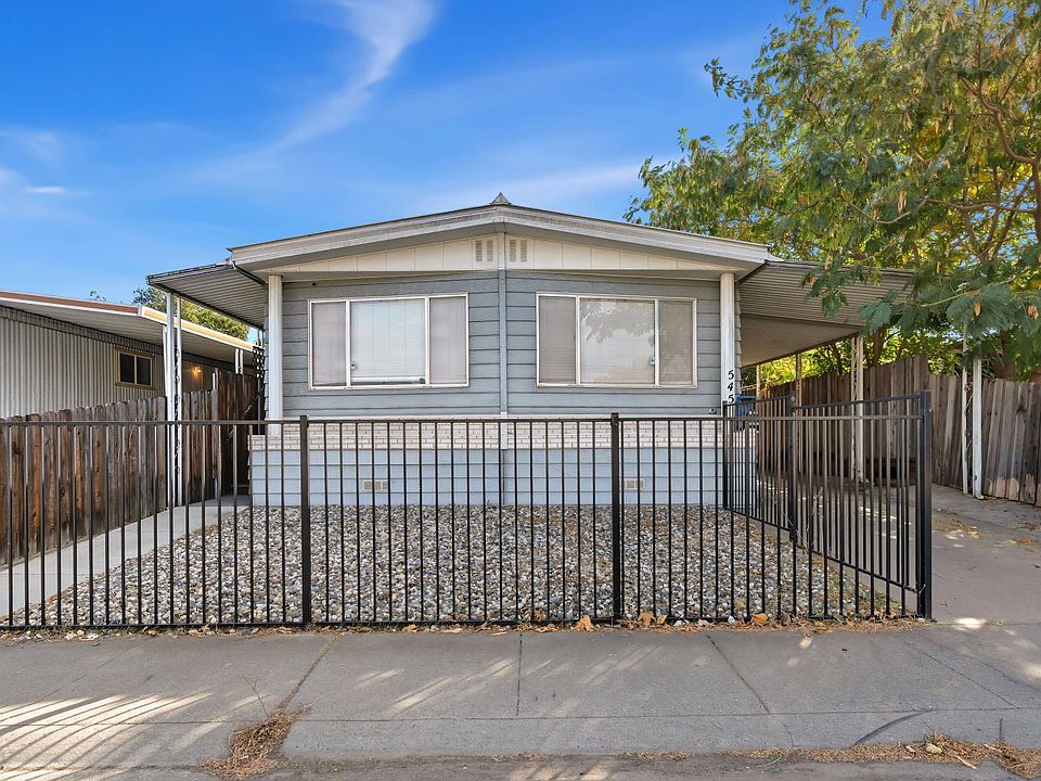 Nestled on the outskirts of Roseville near Antelope, this home offers comfortable living with no HOA fees or space rent! The kitchen features stone countertops, stainless appliances, and a spacious island perfect for gatherings. Both bedrooms are thoughtfully located at the far end of the home, with a bright, open living area up front. Outside, enjoy a fenced backyard with pergola, seating area, and storage shed,ideal for relaxing or entertaining. A rare find combining comfort, functionality, and freedom in Roseville!