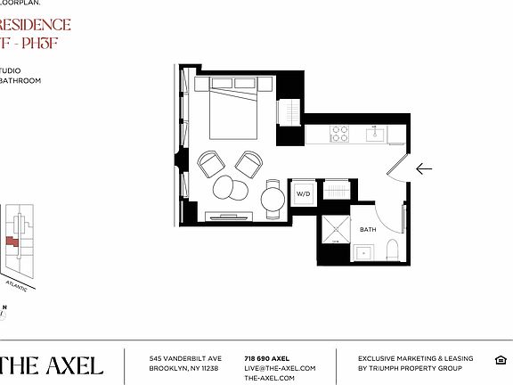 From its perch at the intersection of three legendary Brooklyn neighborhoods, The Axel is the latest high rise to make its debut in New York City. Offering studio to three bedroom luxury rental units with access to an abundance of unrivaled amenity space. F LINE STUDIO: This meticulously designed studio allows you to easily maximize your space and functionality. This west-facing home features wide plank flooring, nine foot ceilings, three closets, walk in shower, and sweeping views of the Manhattan skyline. Each home has a stainless steel appliance package, floor to ceiling windows, and in unit washer/dryer. Located at 545 Vanderbilt Ave, The Axel is conveniently within walking distance of some of Brooklyn's landmarks including the Brooklyn Botanical Garden, Grand Army Plaza, Prospect Park, and Barclays Center. Transportation in the city is a breeze as The Axel is nested near over ten MTA train lines and the Long Island Rail Road. The building's amenities include a bright fitness center, game room, golf simulator, coworking lounge, conference rooms, rooftop sun deck, and a private outdoor pool located on the fifth floor. The building also offers bike storage, and private storage cages for rent with a door person present seven days a week from 11AM to 7PM. The Axel twists toward the sky and beckons you to hear its story. Let yours take shape here; living, working and entertaining and enjoying the life you've yet to live. Call or email to schedule your viewing. *Photos and renderings are meant for illustrative purposes only. In compliance with the FARE Act, the following fees apply: Application Fee: $20 per applicant Security Deposit: Equal to One Months Rent Resident is responsible for electric, cable and internet. Optional: Amenity Fee: $75 per month/per person Storage Fee: $75 per month Bike Storage: $25 per month Pool Fee: Additional fee per season/per person No broker fee. All fees are disclosed upfront per FARE Act guidelines.