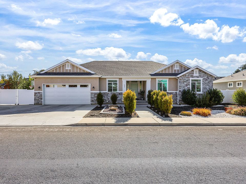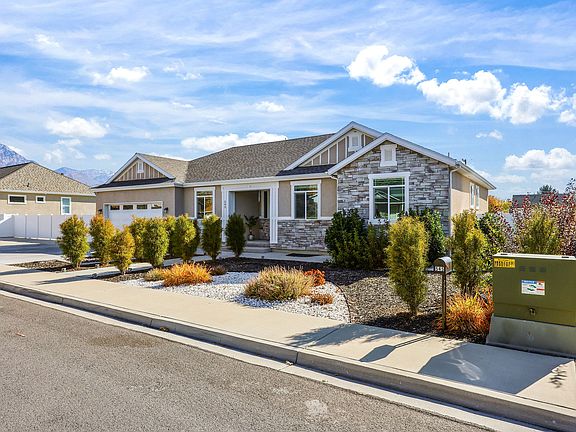 Incredible Orem rambler now available! From the moment you arrive, you'll fall in love with the stunning zero-scape landscaping that makes for unbeatable curb appeal, accented by under-lighting similar to Jellyfish lighting so you can change the colors to fit any mood or season. Enjoy breathtaking mountain views and ample driveway parking before stepping inside to a bright front den perfect for a home office, craft room, or flex space. The open-concept kitchen and family room are a true showstopper, featuring a massive 9-foot island with storage on both sides, a gas range, custom pullout cabinetry, ceiling-height white cabinets, a large walk-in pantry, and beautiful pendant lighting over the semi-formal dining area, ideal for entertaining family and friends. The family room is warm and inviting with a rock fireplace and ceiling fan under soaring 9-foot ceilings. The spacious primary suite offers a designer accent wall, ceiling fan, and luxurious en-suite bath with dual sinks, a Euro-glass shower, separate soaking tub, tile floors, and a large walk-in closet. Downstairs, the fully finished basement provides a huge rec room perfect for movie nights and gatherings, plus two additional large flex areas ready to be finished as bedrooms or kept as open space, along with ample storage and a dedicated cold storage room. The fully fenced backyard is an entertainer's dream, with a large patio for barbecues, a built-in trampoline, basketball standard with a concrete court, garden area, and sandbox for hours of fun. Additional highlights include a spacious laundry room with barn-door entry, tile flooring, and unbeatable access to I-15, restaurants, shopping, and entertainment. This home truly has it all-schedule your private showing today before it's gone! Seller offering 1/0 rate buydown with preferred lender - 5.37% first-year rate available. Contact agent for details. Buyer and Buyers agent to verify all information. Square footage figures are provided as a courtesy estimate only. Buyer is advised to obtain an independent measurement.