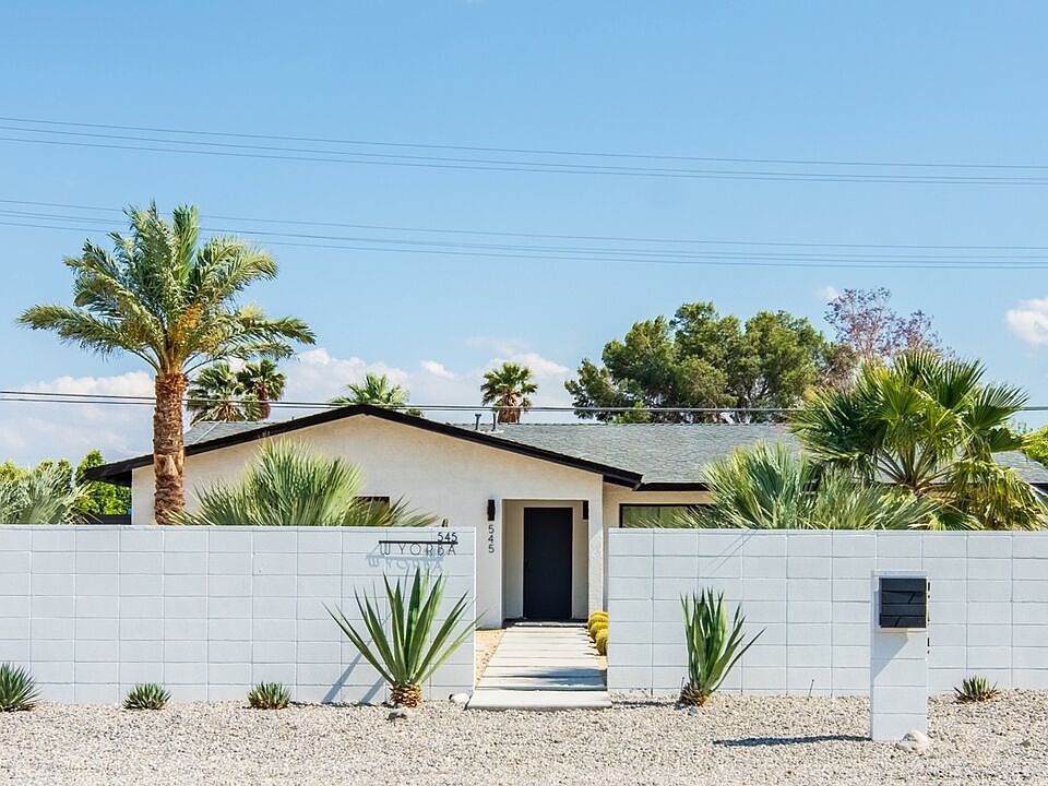 Experience the pinnacle of desert living in this 4-bedroom, 3.5-bath modern oasisa fully reimagined retreat where sophistication meets serenity. Set on a rare double-wide lot, this home is surrounded by over 100 mature ficus trees, creating a lush private sanctuary with unobstructed mountain views. Step outside to a resort-style escape featuring a saltwater pool and spa with baja shelf, a 10-person hot tub, and a firepit beside a turfed play area. Entertain with ease thanks to a built-in BBQ, outdoor dining area, and dedicated pool bath, all enhanced by $150K+ in professional hardscaping and landscaping, sleek block walls, and ample parking pads. Inside, natural light pours through expansive glass doors connecting the living area to the outdoors. The chef's kitchen boasts quartz counters, stainless steel appliances, and a Carrara marble dining table centerpiece. Modern touches abound: polished concrete floors, floating vanities, and two primary suites with en-suite baths.Offered fully furnished and turnkey, this property has a proven short-term rental history with rave reviews, making it ideal as a luxury investment or personal retreat. Additional upgrades include a new HVAC system, leased solar, and a new Pentair saline system for effortless maintenance.Live or invest in one of Palm Springs' most desirable neighborhoods where modern elegance, privacy, and income potential unite in one extraordinary property.