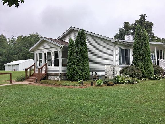 Very nice 3 bedroom, 2 bath ranch home on 2.5 acres. Great country setting, yet only 1.5 miles north of town with 2 great outbuildings! Open floor plan in living, kitchen & dining areas. New kitchen counter top & back splash in 2015. Extra features are: double sink in master bath, ADT security system, very nice blacktop drive, 3 year shingles on house, 6 month old furnace, 7x12 enclosed porch and 7x18 front porch, 4 ft insulated crawl space with sump pump, furnace & hot water heater. There is also a 6 ft sliding door to the 11x11 deck. Wonderful 2 car detached garage and a 30x40 pole barn, insulated complete with a gas forced air furnace. Very nice piece of property and you can enjoy watching the deer!