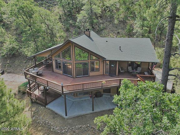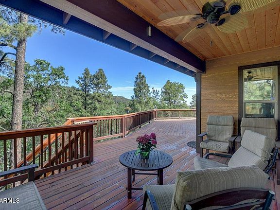 GREAT LOCATION BORDERING the PRESCOTT NATIONAL FOREST on 2.49 ac. with a GOOD WELL. ALL SEASONS access off of PAVED Walker Rd, 3 MILES TO LYNX LAKE and under 6.5 miles to Costco, Walmart, Trader Joes, Gateway Mall and franchise restaurants. The house exterior is MAINTENANCE FREE James Hardie siding. The great room has T&G ceilings and a high efficiency wood burning fireplace. The kitchen area features granite counters, cherry cabinetry with lots of storage, a cabinet pantry, JennAir SS appliances and oak flooring. On this same level is the master bedroom/master bathroom, guest bedroom/bathroom and laundry area with new commercial size Speed Queen washer and dryer. Other features of this custom-built home include a game room/family room/built in bar, a walk-in pantry/storage, a gas..Cont'd fireplace and an office/bedroom with a Murphy bed along with a bathroom/shower. A 3-car garage gives you plenty of room for a workshop or toys. An upper redwood deck gives you the opportunity to spend your nights gazing at the stars and the lower patio deck gives you shade with cool summer breezes. Use as a full-time home or a vacation home. Peace and serenity are at your fingertips. Enjoy the panoramic pine mountain views with gorgeous sunsets living in your own slice of heaven. Please see docs tab for a list of owner updates.