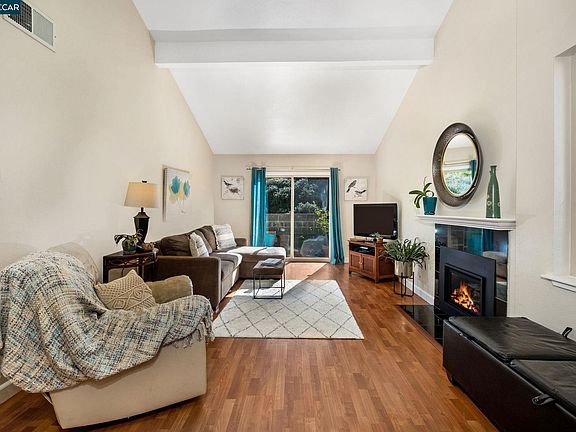 BEST PRICED HOME in Concord per location, condition and sq. ft. 2 bed 2 bath home with 1,272 sq. ft. of living space. Nestled in the back of complex with no rear neighbors. Open kitchen to eating area with breakfast bar and Cambria Granite counters. Vaulted ceiling in family room with gas fireplace. Home features fresh interior paint, inside laundry, new water heater, bed and bath downstairs and one car garage. Upstairs has private primary bedroom with vaulted ceiling, views of hills, full bath, three closets and plenty of room for a king bed. Slider to private patio for entertaining. Enjoy the sparkling pool during the hot summer. Close to shops and restaurants.