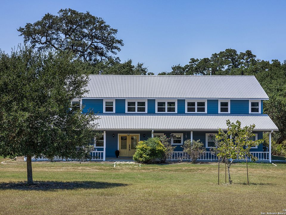 This beautifully maintained 5-bedroom, 3.5-bath ranch offers a move-in ready retreat with fresh paint inside and out. The open-concept kitchen features white cabinetry, granite countertops, gas cooking, and a breakfast bar flowing into a bright living area. A wrap-around porch invites you to enjoy serene country views. The main-level primary suite boasts dual closets, separate bath areas, and private porch access. Upstairs, four bedrooms and an oversized game room provide ample space for family and guests. Equestrian amenities include a large barn with bunk house, tack room, horse stalls, workshop, and storage, opening to an arena for training and riding. Mineral rights are included. Experience peace, privacy, and true country living. Easy access to IH10.