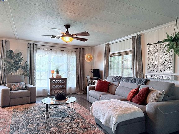 Welcome to this spacious 1976 mobile home offering 3 bedrooms and 2 full bathrooms in a prime South San Jose location. This home features a bright, open layout with a large living room that can easily function as two separate living spaces—perfect for relaxing, entertaining, or creating a home office setup. There’s also a separate dining area and a cozy family room, giving you plenty of space to spread out. The primary suite includes its own private bath, while the additional bedrooms and second full bathroom provide comfort and flexibility for guests or family. The home comes complete with a washer, dryer, and refrigerator for added convenience. Outside, enjoy the newly painted exterior, a 2-car carport, and a storage shed for extra space. Located just minutes from shopping centers, grocery stores, restaurants, and highways 101 and 85, this home keeps you connected to everything South San Jose has to offer.